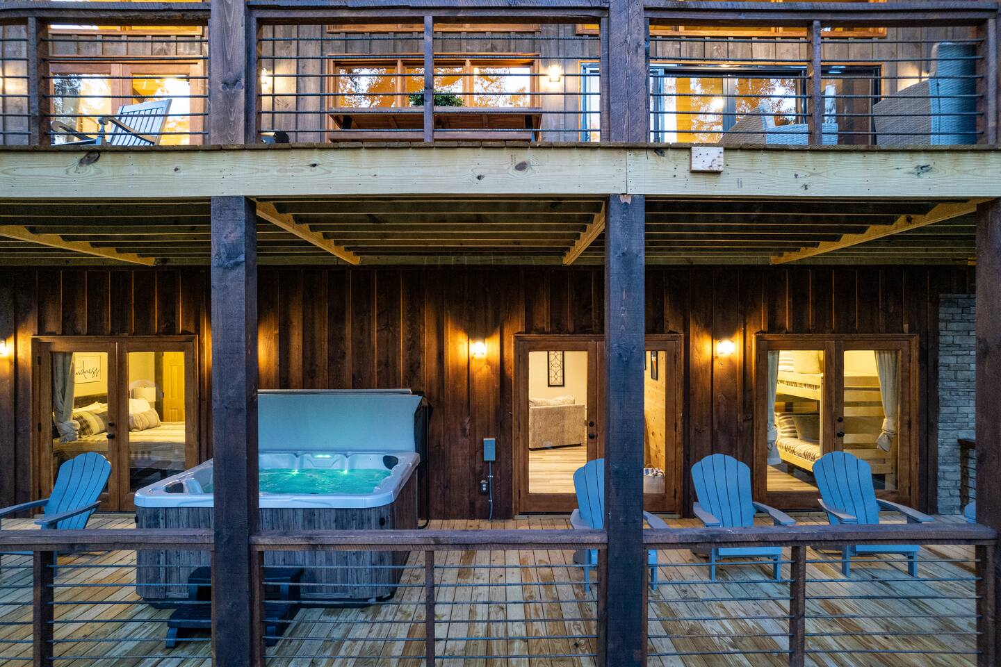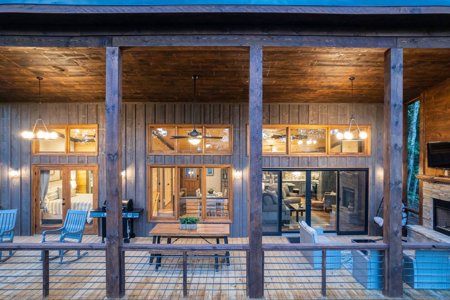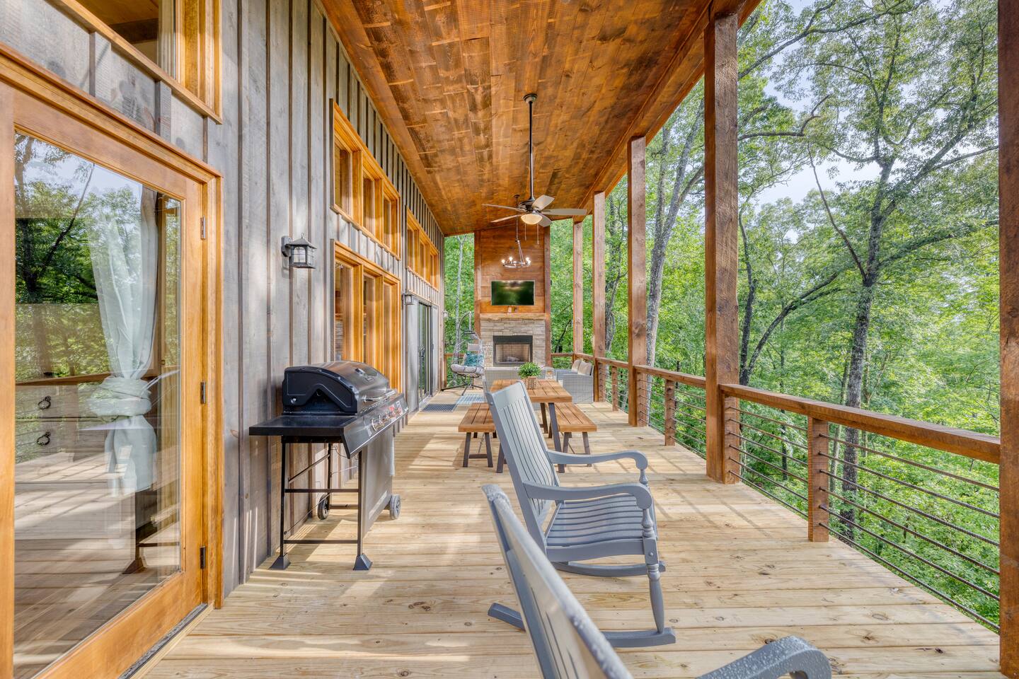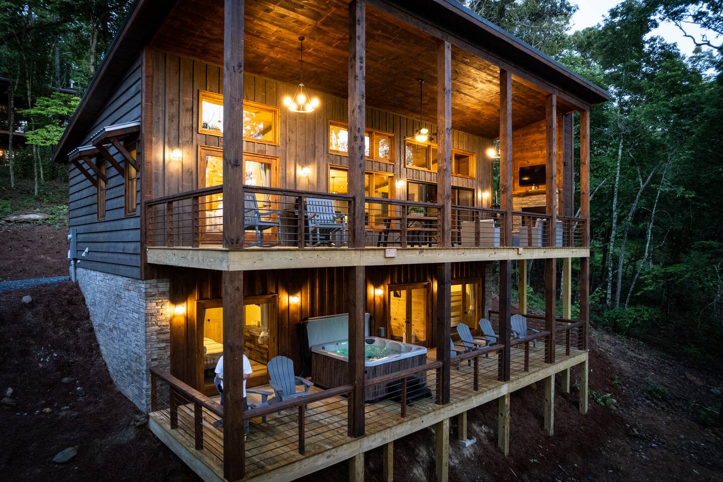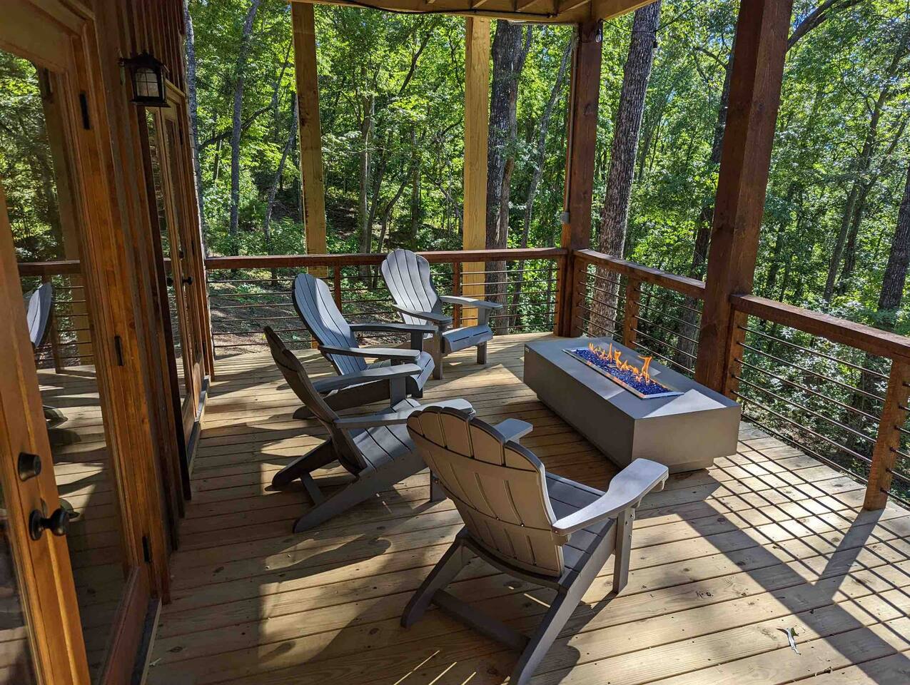 The Bluff Haus is a chalet-style getaway in the Blue Ridge Mountains. Two decks overlook a lush forest – and are the stuff of Appalachian dreams. From an outdoor living room to a hot tub and glowing string lights, our decks are a vacation destination unto themselves. Inside, this new house inspires and comforts you across two floors with a farmhouse vibe, tons of amenities, free EV charging, and large windows with endless tree views.